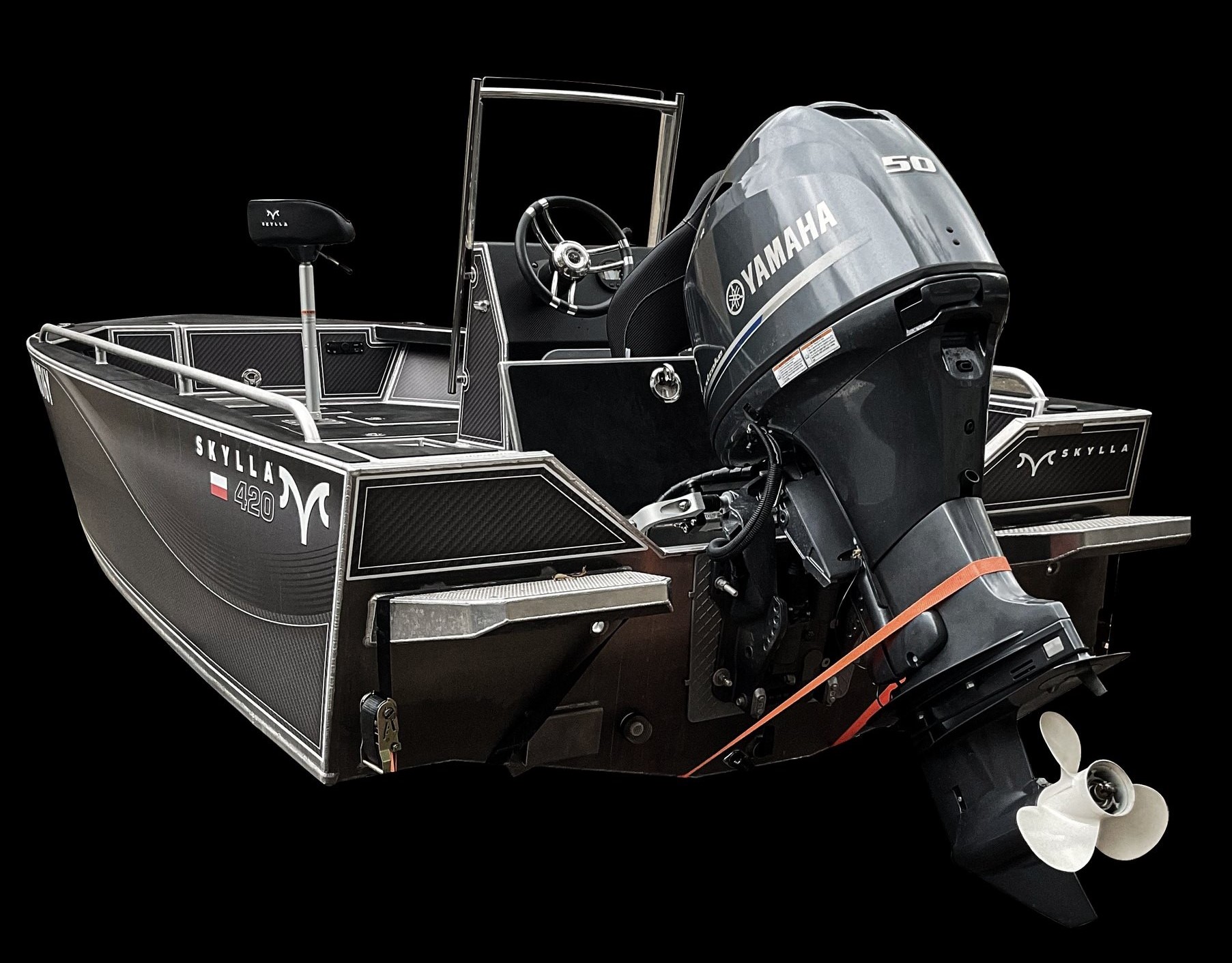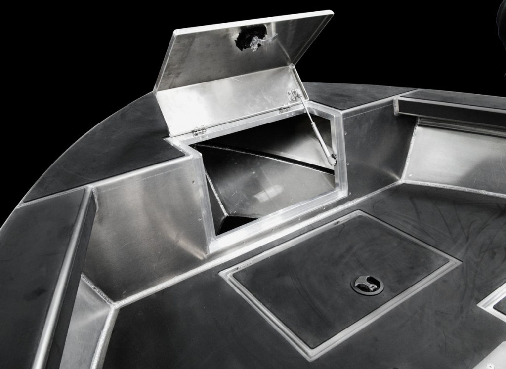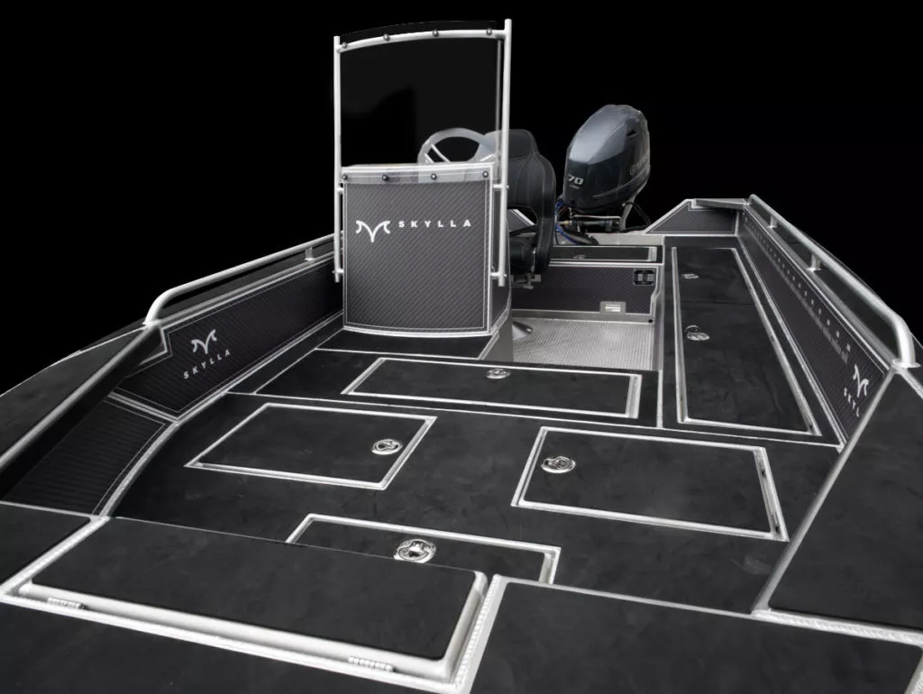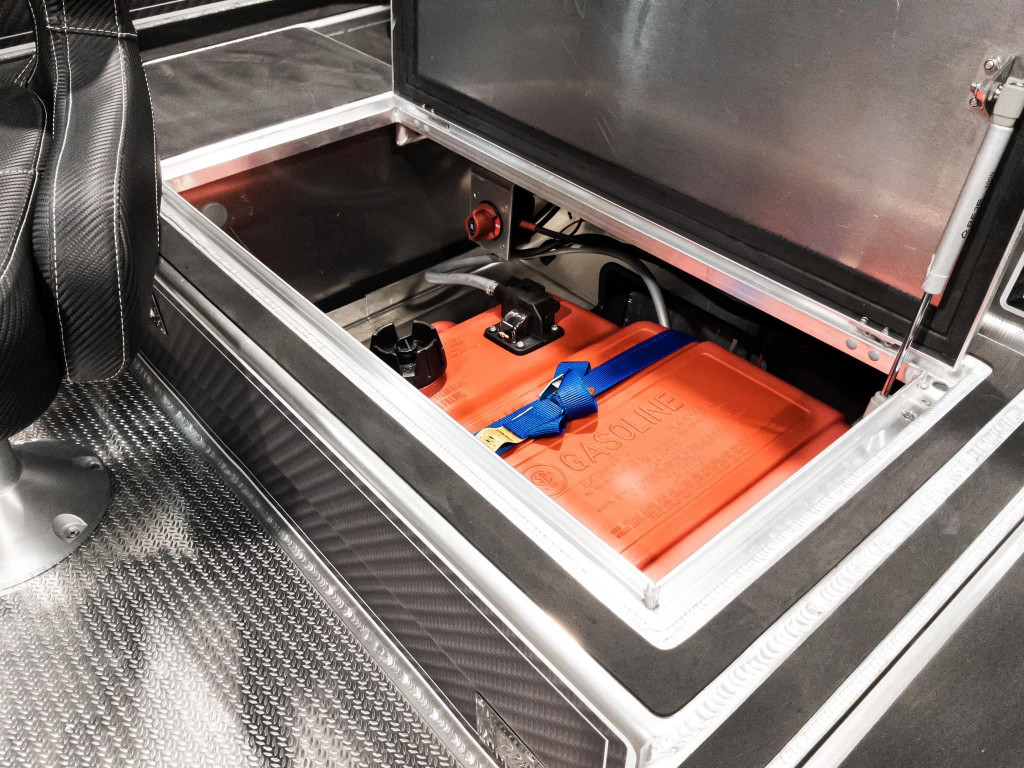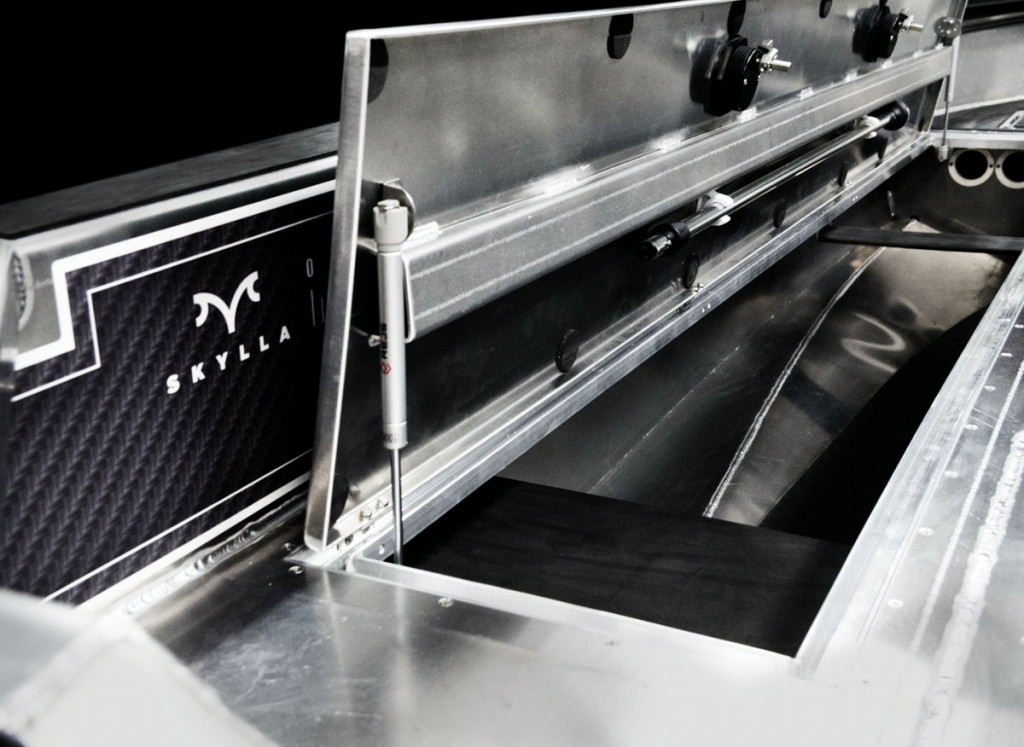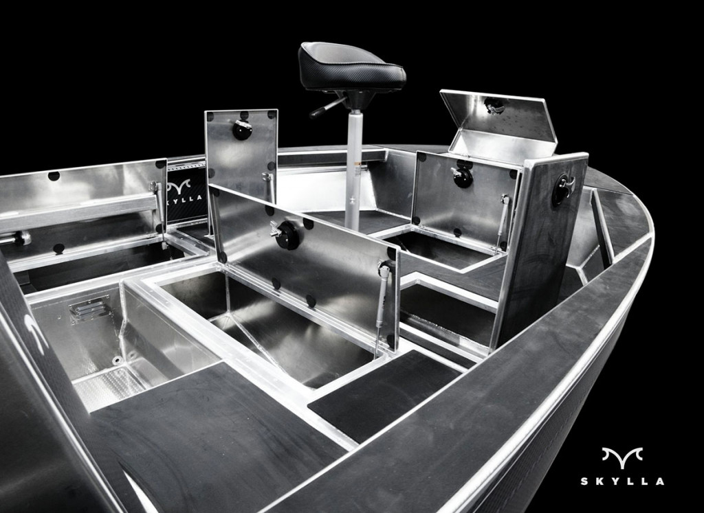● baza pentru un scaun usor incorporata in platforma din prova , picior pentru scaun (38 cm inaltime), baza pentru sezut si sezut incluse . Spatiu rezervor si depozitare in bancheta din spate . Sisteme de inchidere cu cheie pe toate compartimentele